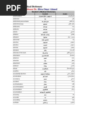 English Kurdish Arabic Medical Dictionary Medical Specialties Clinical Medicine Free 30 Day Trial Scribd