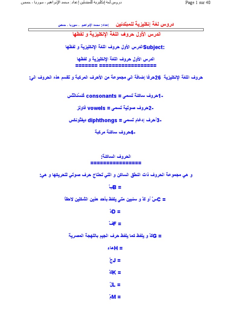 دروس لغة إنجليزية للمبتدئين