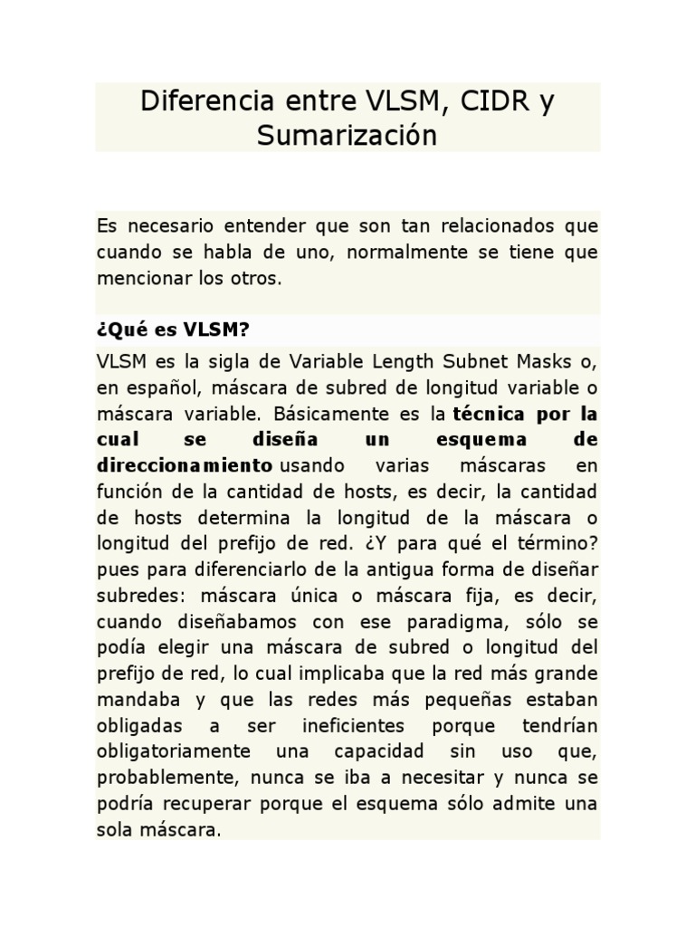 Diferencia Entre Vlsm Y Cidr