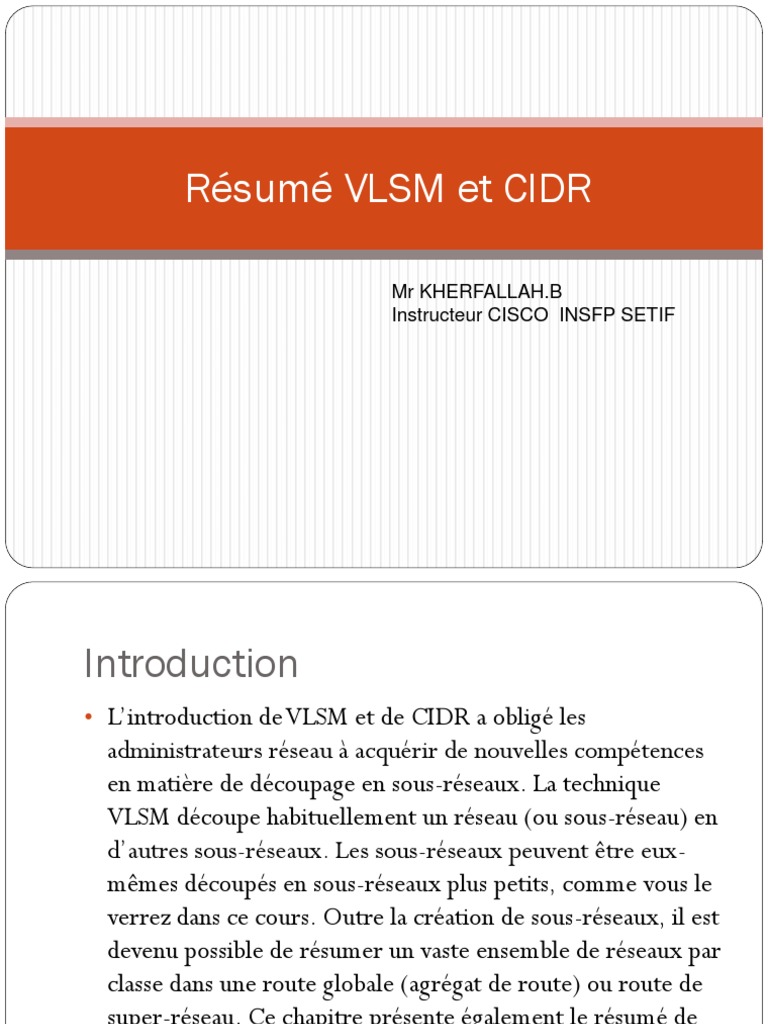 Reseaux Et Securite Informatique Cidr Et Vlsm