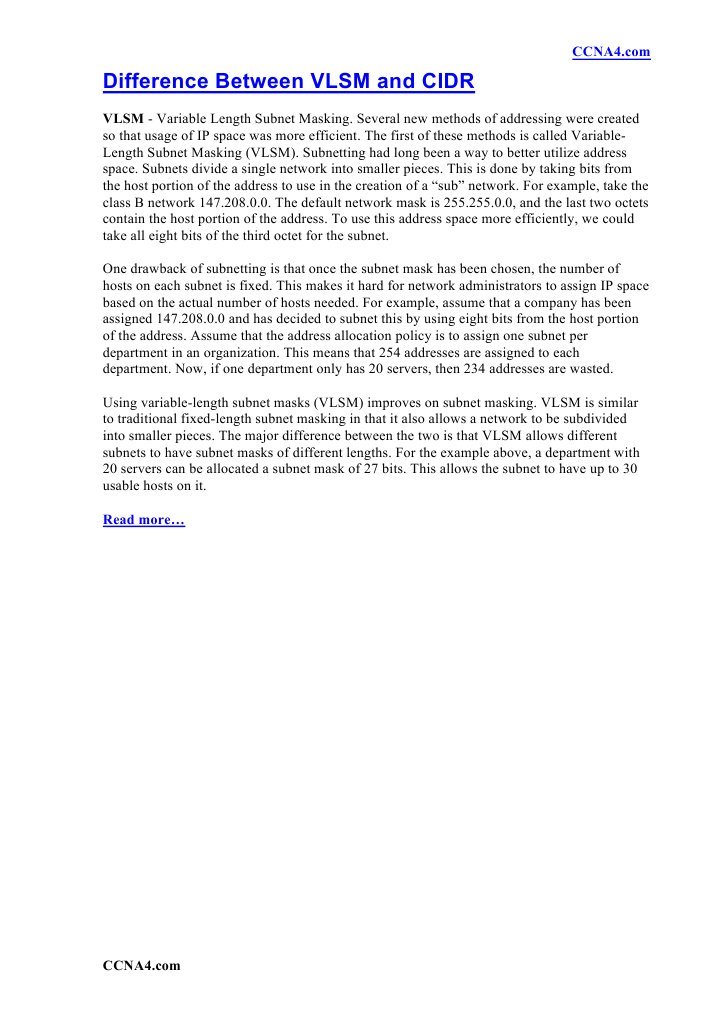 Subnetting Supernetting Vlsm Cidr Pdf Free Download