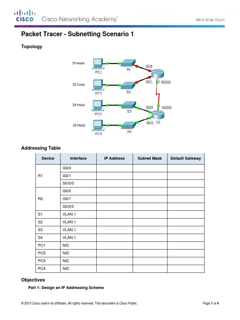 9 1 4 6 Packet Tracer Subnetting Scenario 1 Instructions Pdf Gateway Telecommunications Ip Address