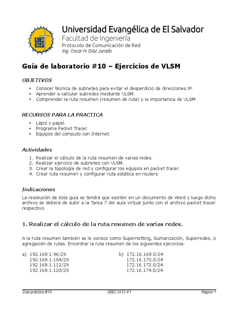 Guia 10 Ejercicios De Vlsm Enrutador Computacion Direccion Ip