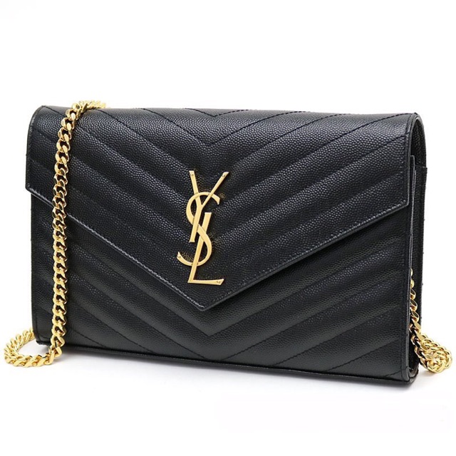 Saint Laurent Wallet On Chain Ysl Monogram Envelope Woc Black Gold